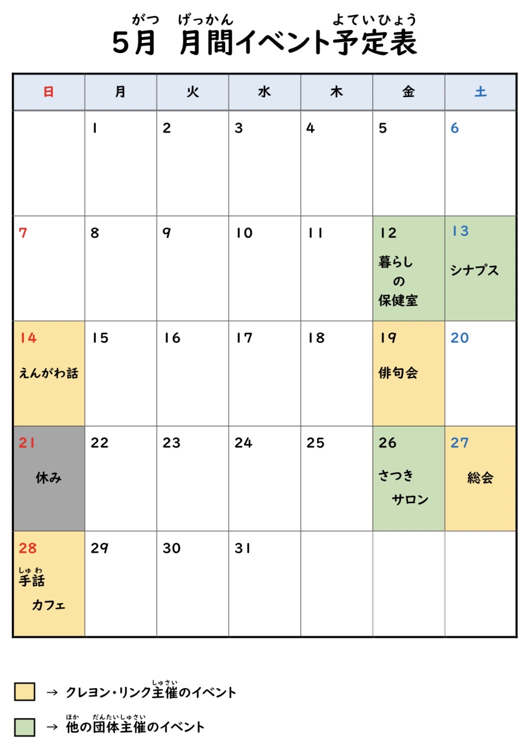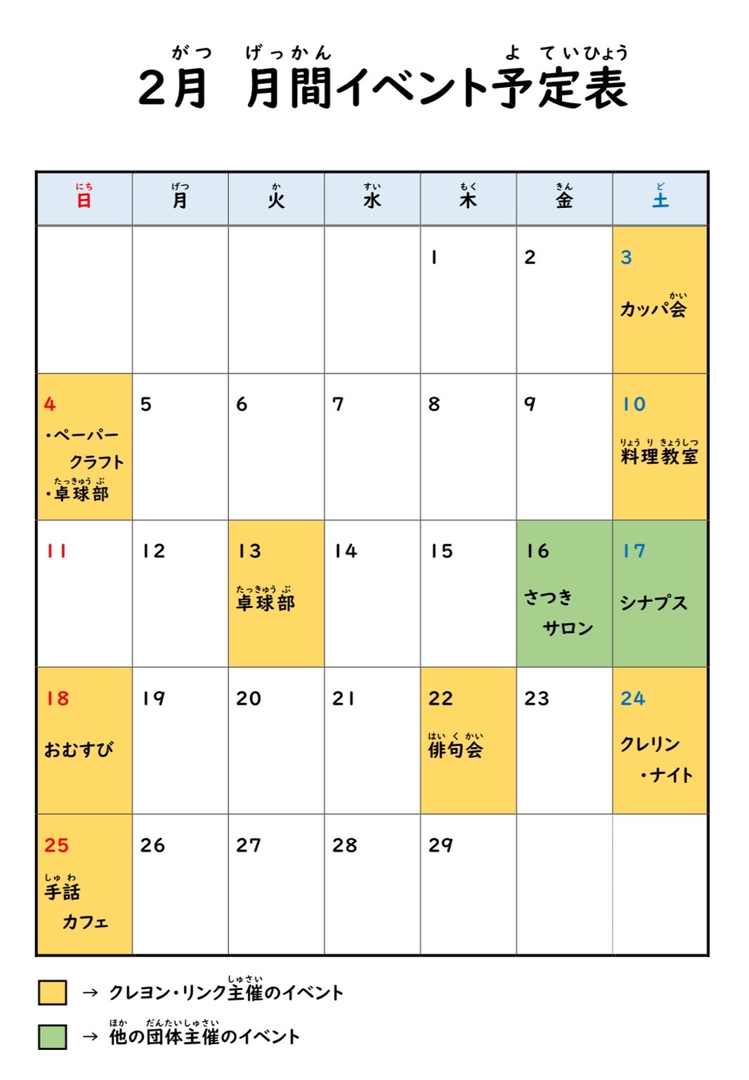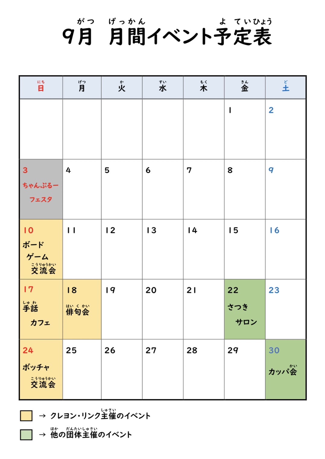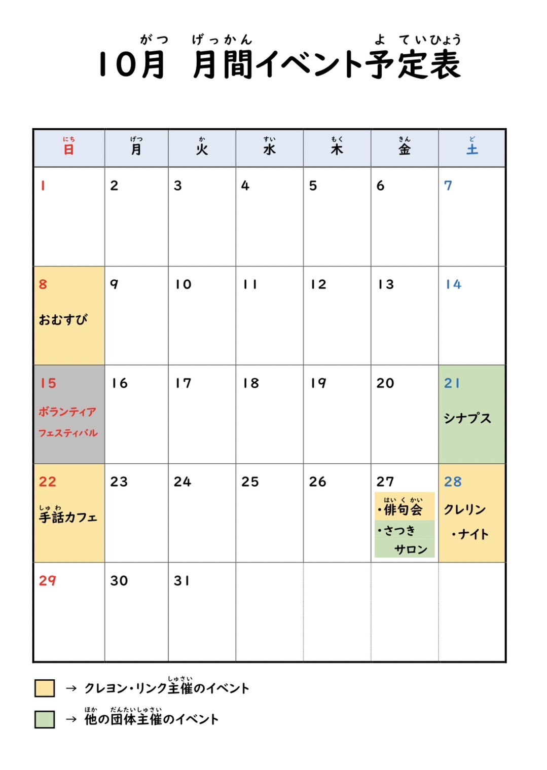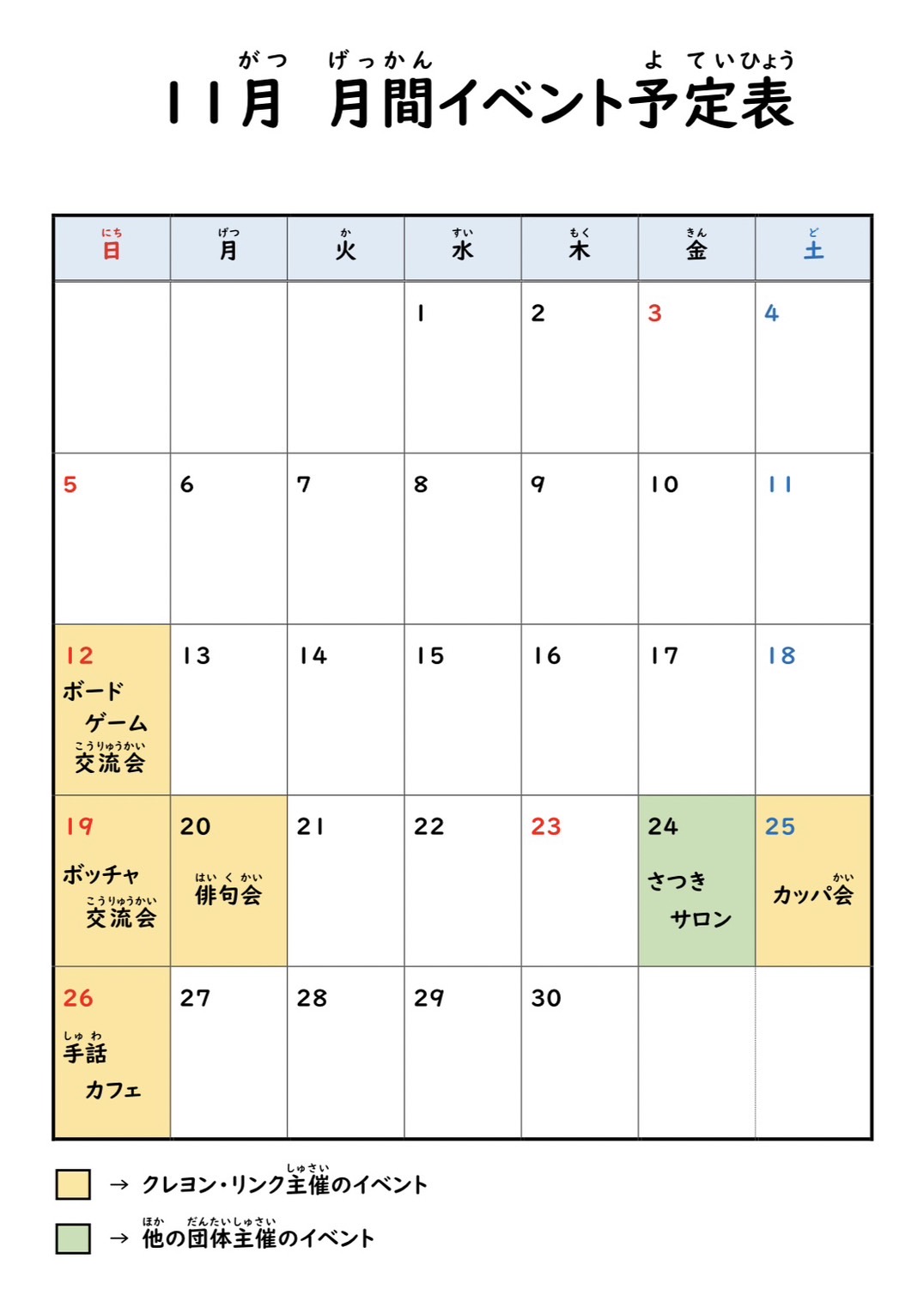 11月のイベント予定は、こちらのカレンダーのようになっております。