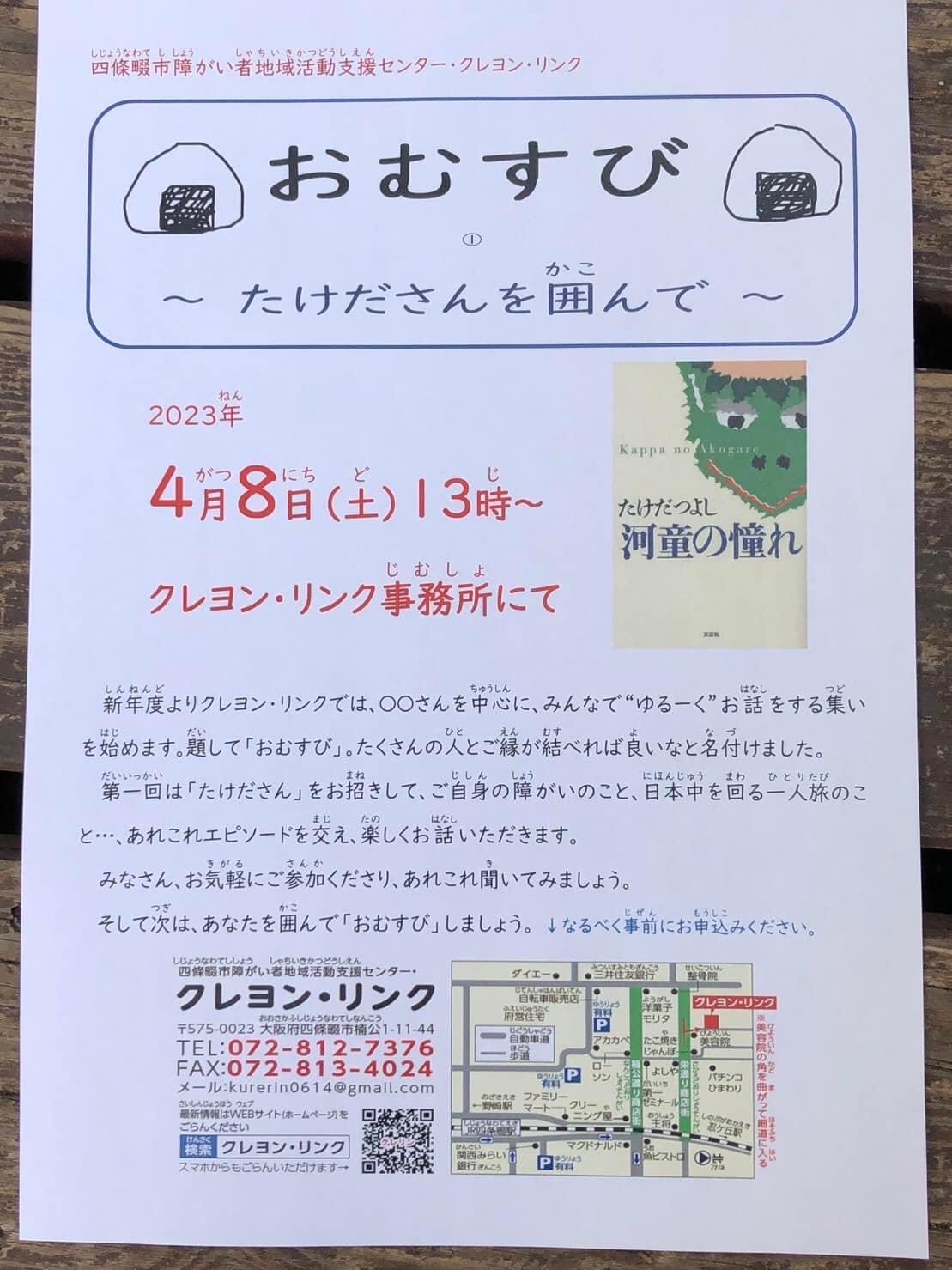 昨日4/8(土)は、【『おむすび』 ~たけださんを囲んで~】を催しました。