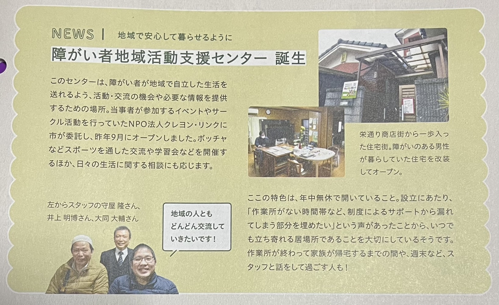 地域活動支援センター・クレヨン・リンクのことを紹介していただきました!